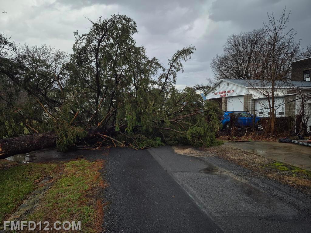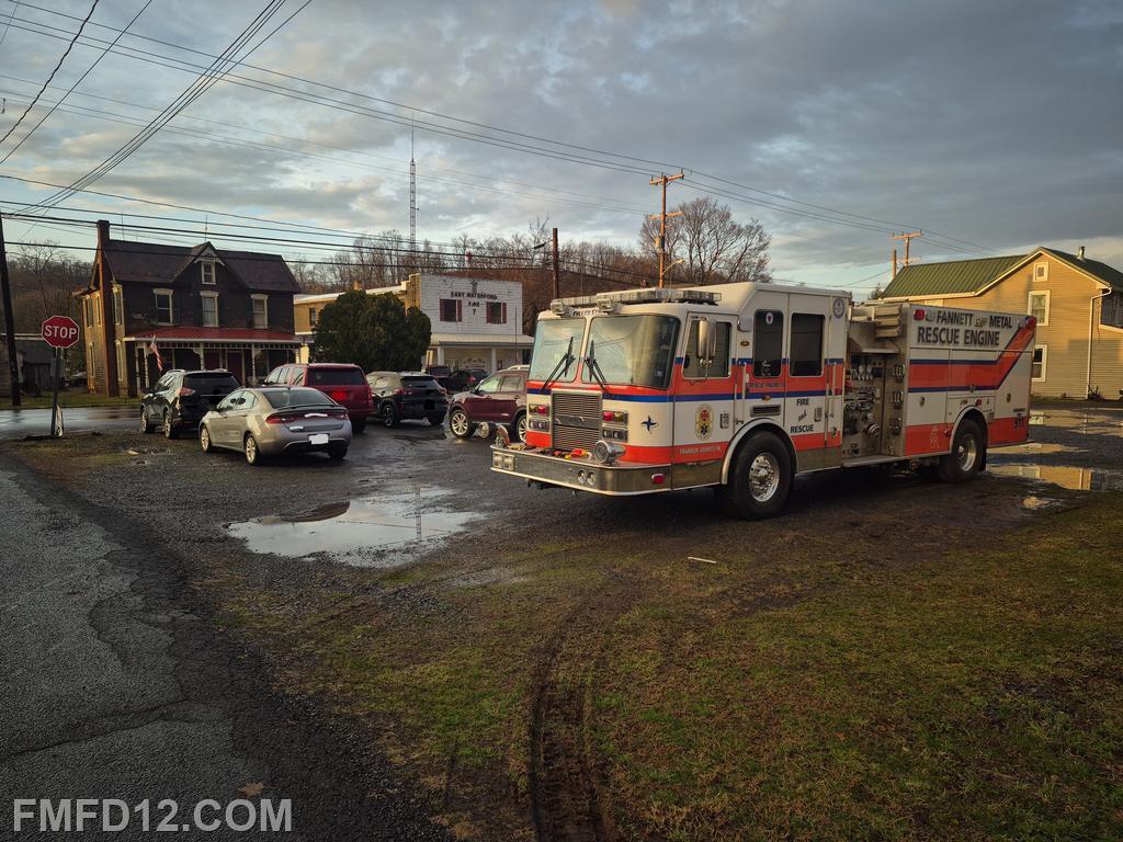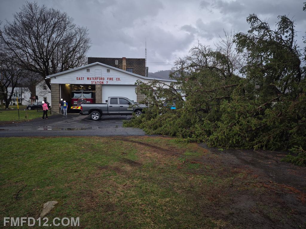 | Rescue Engine 12 transferred to Juniata County Company 7 Wednesday evening. The reason for the transfer was due to a large tree falling during a storm and taking out powerlines. Both the tree and the powerlines blocked all of East Waterford's apparatus, rendering them unavailable for calls until the situation was corrected. |